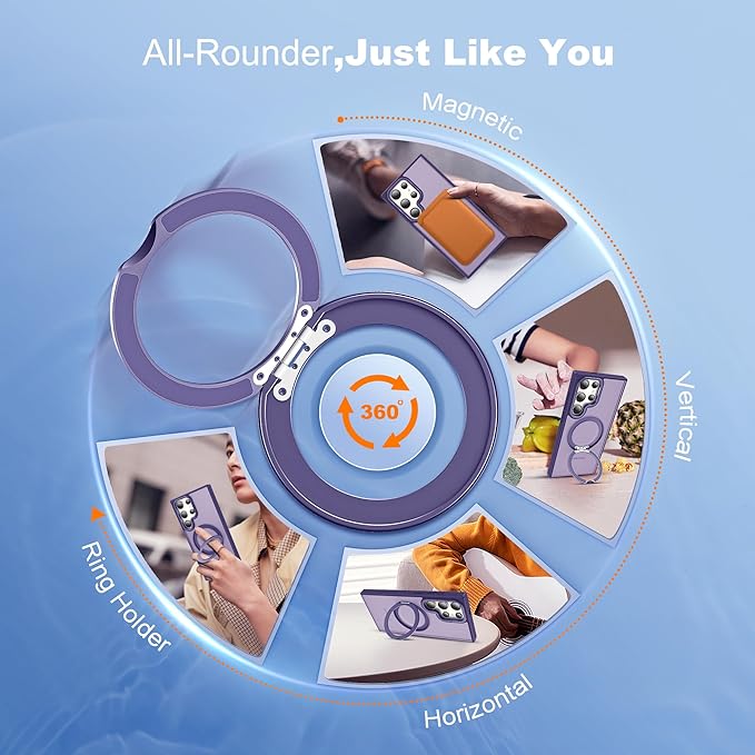 Compatible with Samsung Galaxy S22 & S23 Ultra Case with 360Rotatable Magnetic Ring Stand Compatible with Mag-Safe Military Protection Shockproof Translucent Phone Case,Dark Purple