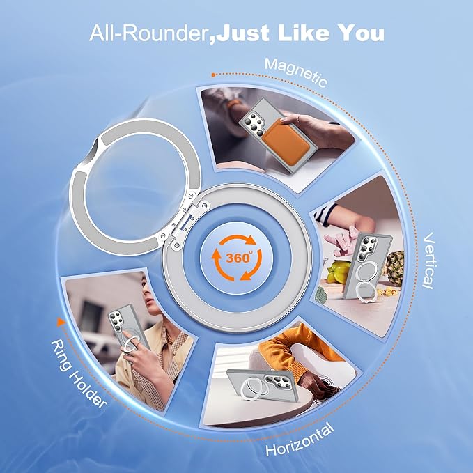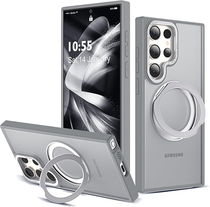 Compatible with Samsung Galaxy S22 & S23 Ultra Case with 360Rotatable Magnetic Ring Stand Compatible with Mag-Safe Military Protection Shockproof Translucent Phone Case,Gray