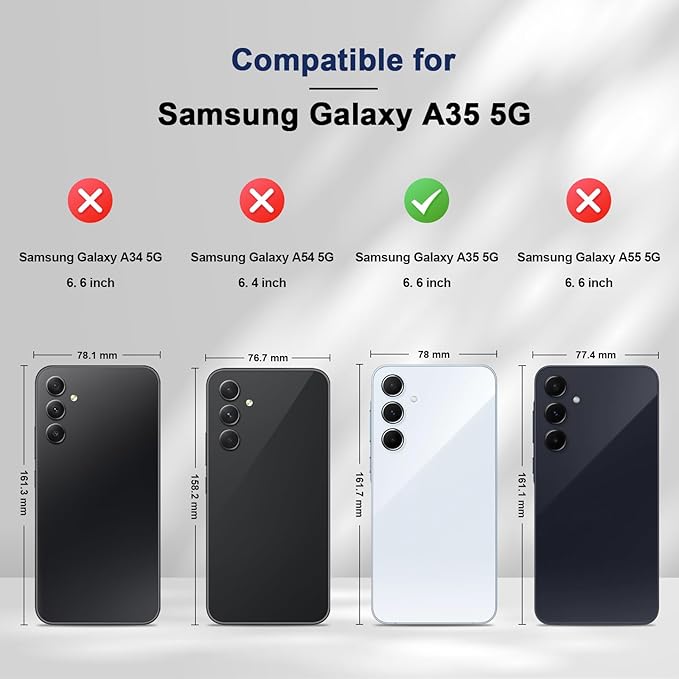 - 【Compatibility】:Designed for Samsung Galaxy A35.The Leather wallet case precise cutouts for easy access to all ports, buttons, sensors and cameras. Soft buttons with good response, are easy to press.Please check your phone model that is correct before placing an order.