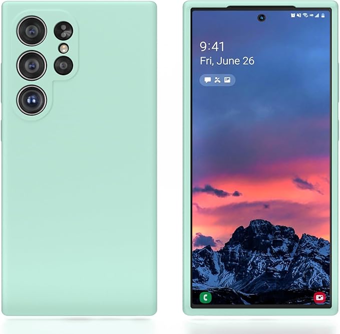 E Segoi Designed for Galaxy S24 Ultra Case, Liquid Silicone Gel Rubber Shockproof Case Soft Microfiber Cloth Lining Cushion Compatible with Galaxy S24 Ultra 5G 6.8 inch (Mint, S24 Ultra - 6.8")