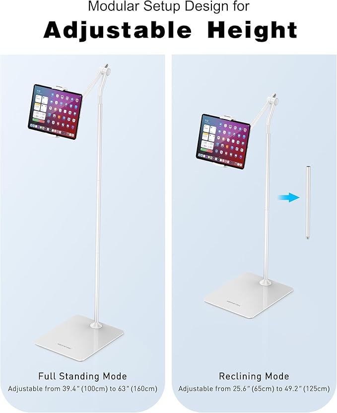 - Effortless Tool-Free Assembly: Set up your new tablet floor stand in minutes! The simple twist-and-lock arm connections require no tools. Get instant, hassle-free stability and convenience for your iPad or tablet reading and viewing anywhere in your home or office.
