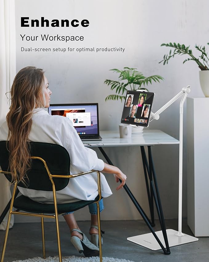 - Versatile Hands-Free Viewing: Elevate your digital life in any room. Perfect as an iPad floor stand for video calls in the living room, a recipe tablet holder in the kitchen, or a relaxing bedside floor stand for movies. Ideal hands-free viewing for iPad, Galaxy Tab, Kindle, and more.