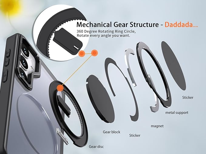 - [Magnetic, Stand, 360° Rotating Ring Multifunctional Phone Case] The stand is made of aviation-grade metal alloy material and can stably support your phone at any angle. Built-in N52 super strong magnet with strong adsorption force, allowing your phone to be firmly attached to objects with magnetic attraction such as magnetic car mounts, This product is Compatible with Magsafe & Wireless Charging.