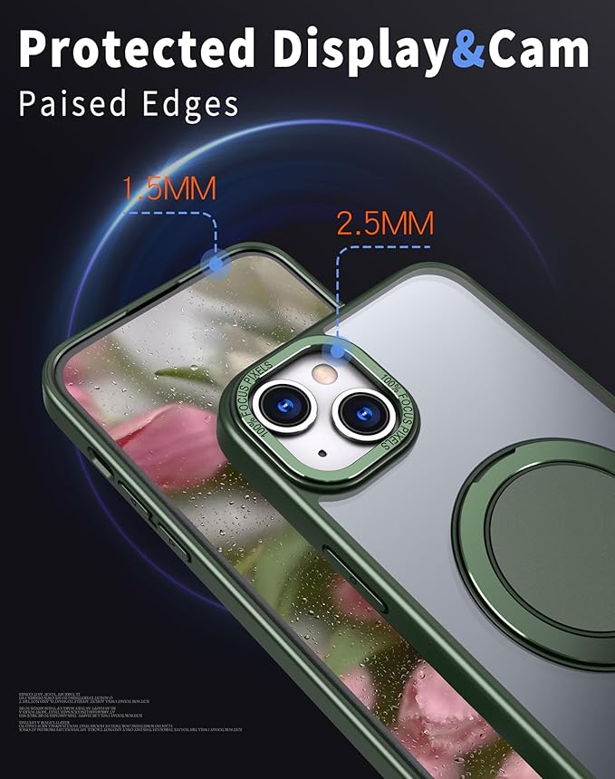 - [Magnetic, Stand, 360° Rotating Ring Multifunctional Phone Case] The stand is made of aviation-grade metal alloy material and can stably support your phone at any angle. Built-in N52 super strong magnet with strong adsorption force, allowing your phone to be firmly attached to objects with magnetic attraction such as magnetic car mounts, This product is Compatible with Magsafe & Wireless Charging.