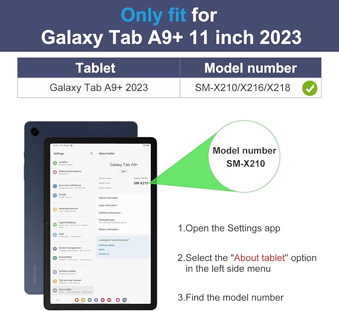 - Compatibility - Specifically Designed for the Samsung Galaxy Tab A9 Plus / A9 + 11 inch 2023 Released Tablet(Model Number: SM-X210/X216/X218). Not compatible with any other Samsung tablet model