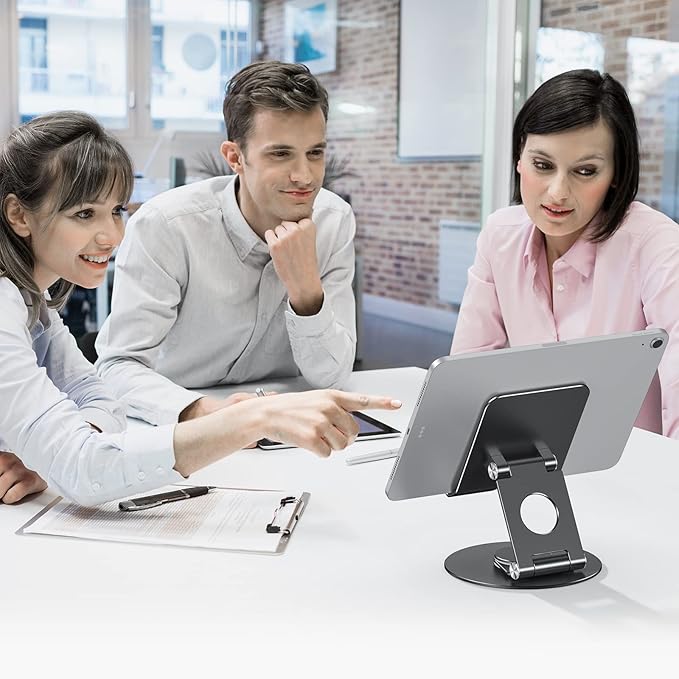 - 【360°Rotation】With a 360°rotating base, you can easily share your creation or business ideas with one-hand direction control. No need to move the traditional tablet stand back and forth like before.