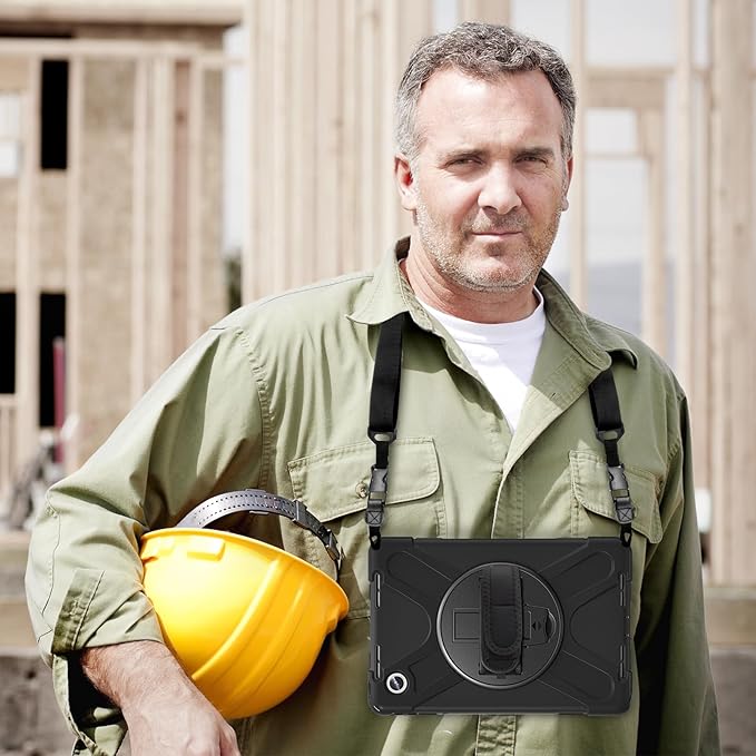 - Versatility: 360 degree rotatable kickstand offers optimum position for typing or viewing; Ergonomic and comfortable back handle allows you to grip your tablet securely and steadily with one hand, worry-free from dropping it