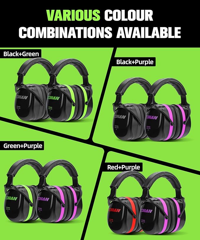 - HIGH NOISE CANCELING EAR MUFFS: With a noise reduction rating of up to 28dB(SNR 34dB) which meets the USA & EUR standards. Protect your hearing from hazardous sound levels. Perfect for mowing/fireworks/working/sports event/autism/airplanes and any noise environments