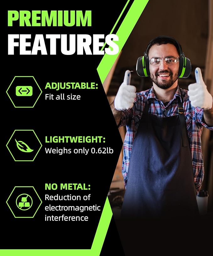 - LIGHTWEIGHT & COMFORTABLE: The ear protection earmuff is designed to be lightweight and slim. The ear cups are wide and the ear pads are extremely soft yet durable, they can fit snugly around your ears with no pressure