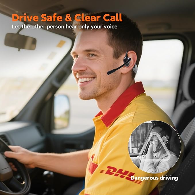 - 【AI Noise Cancellation Microphone】: Powered by advanced AI algorithms, our wireless headset with mic for work delivers exceptional noise cancellation with minimal distortion, effectively filtering out up to 50dB of background noise for call while simultaneously and clearly isolating your voice from surrounding conversations. Whether you're working at the noisy office or communicating in remote meetings, this noise cancelling microphone headset will make every communication clear and efficient.