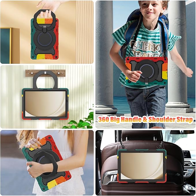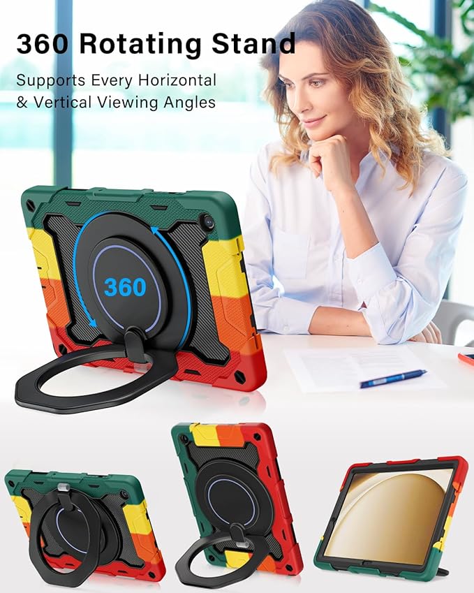 - [Multiple angles of kickstand/Magic Kickstand & Handle] Upgrade 360 rotating and foldable kickstand provides angle between 20-75 degrees of horizontal (landscape) or vertical (portrait) orientation for your 11 inch Galaxy Tab A9+ tablet. Also offers hand hold and hung on wall using by handle function, allow you use or carry much easier, match up all kinds of group