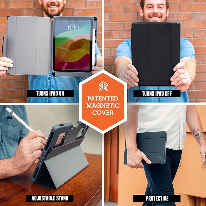 - VERSATILE COVER: Quickly and easiest configure the cover into viewing or typing position securing with a patented magnetic closure, when done closing the cover automatically turns off the device then when opened it wakes the iPad A16/10th Gen