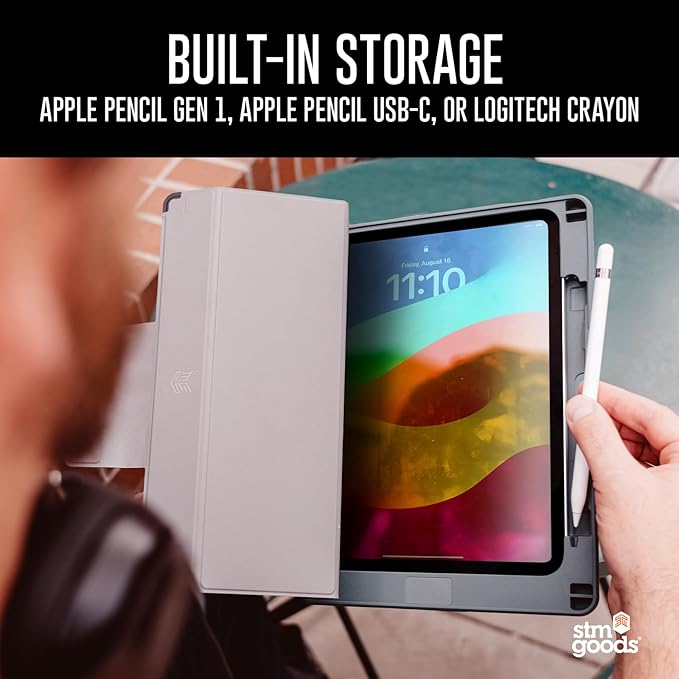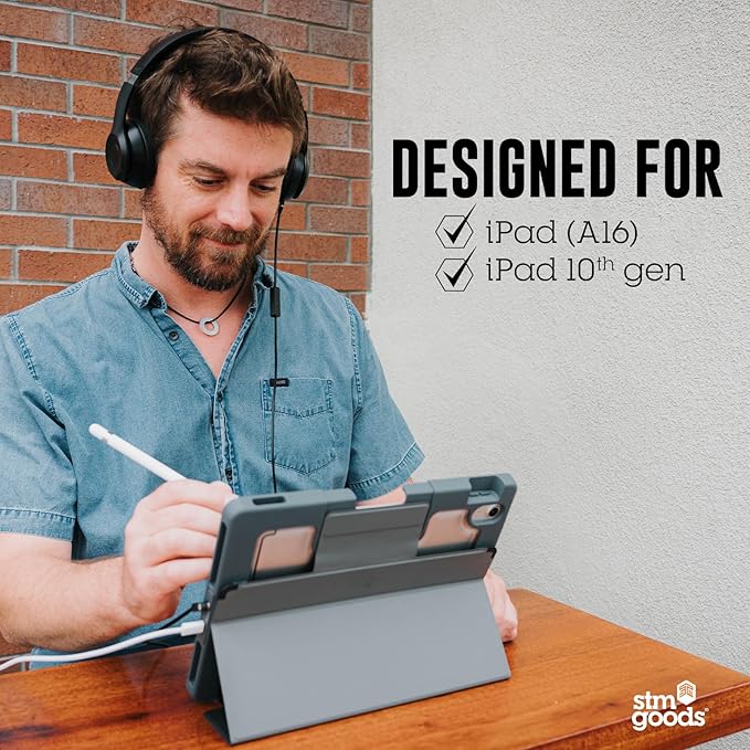 STM Goods Dux Ox for iPad (A16/10th Gen) Super Protective Case with Integrated 3.5mm Aux Jack, Translucent Back, Durable & Water-Resistant, Built-in Storage for Apple Pencil USB-C/Gen 1 - Black