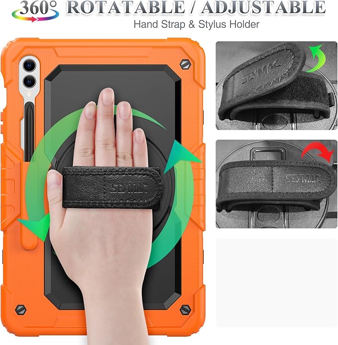 SEYMAC stock Case for Samsung Galaxy Tab S10 Plus/ S9 FE Plus/ S9 Plus 5G Tablet 12.4'' Case with Screen Protector Pencil Holder [360 Rotating Hand Strap] &Stand, Drop-Proof, Orange1