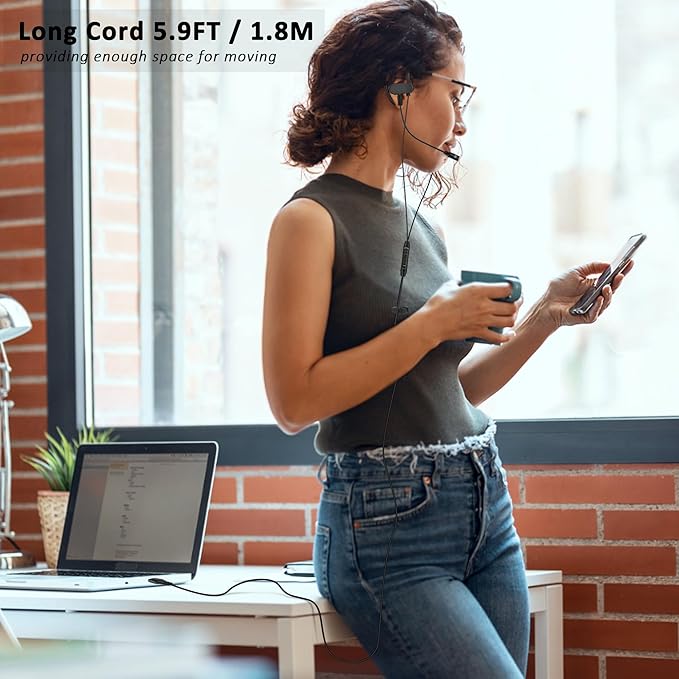 - HANDS-FREE CONTROL & LONGER CORD - The in-line control provides 3 bigger buttons for easy and quick operation including volume / track / call control, you can also temporarily mute the microphone by press and hold the central button. The 5.9FT long cord gives you plenty of moving space - it can reach the USB port under desk without hassle.