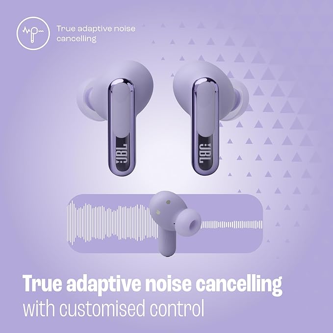 JBL Live Beam 3 - True wireless noise-cancelling closed-stick earbuds, 48Hrs total playback, Wireless Charging, 6 Mics for perfect calls, Multi-point connection, IP55 waterproof and dustproof (Purple)
