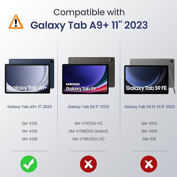 - Compatibility: Specially designed for Samsung Galaxy Tab A9 Plus 11-Inch 2023 Release (Model: SM-X210/SM-X216/SM-X218). It will NOT work for any other model device, please confirm the model number before purchase.
