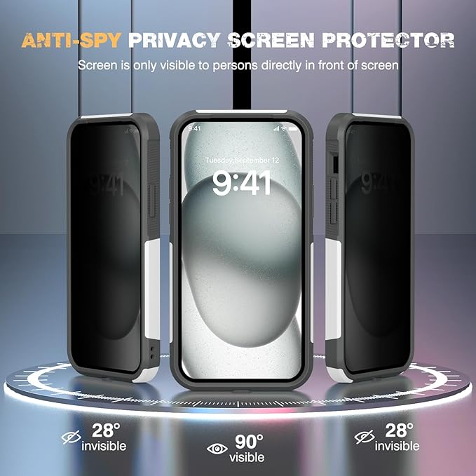 - 【4-in-1 360°Full Protection】 Case for iPhone 15 Plus with 9H Privacy Tempered Glass Screen Protector can protect your phone screen from scratch and broken. 2-Layer structure (the flexible rubber inner cover and hard PC back cover) provides 360 degree full body rugged protection.