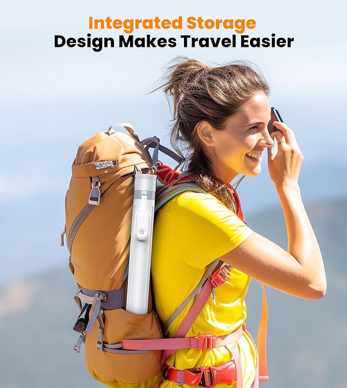 - Larger & More Stable Base : The cell phone tripod base adopts a stable triangular structure, each leg is 28cm/11" long, and the maximum span of the base is 41cm/16.14", which makes the tripod more stable. (Please note that the cellphone tripod should be placed on a flat surface.) The folding design of the selfie stick tripod with remote is very portable, you can put it in your backpack or suitcase and take it with you when you are traveling.