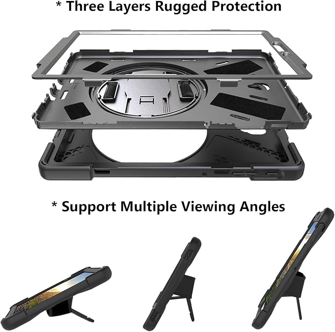 - 【360 Rotating & Handle Strap】: Soft Handle strap with 360 Degree rotating design provides Three angles viewing, easier to use your tablet in your outdoor travelling, working, gaming with kids.