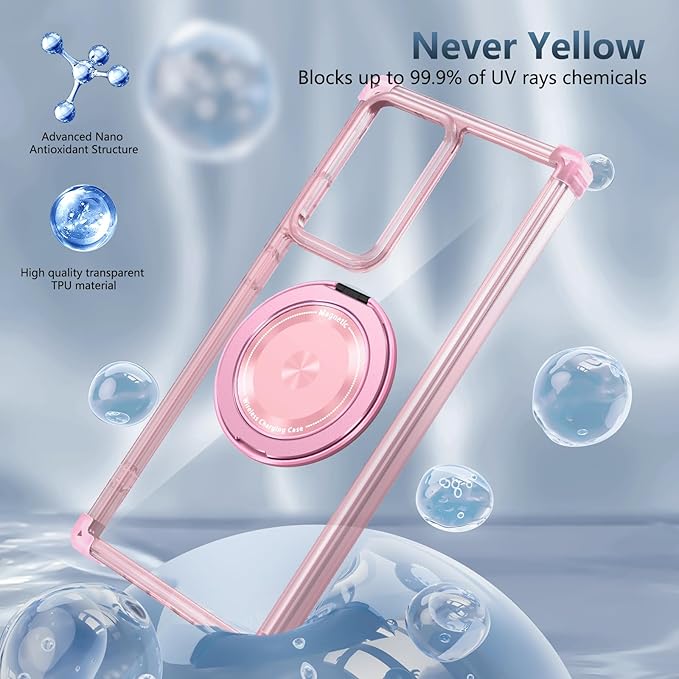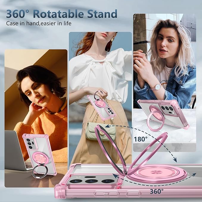 Magnetic for Samsung Galaxy Note 20 Ultra Case Compatible with MagSafe Wireless Charging,with Screen Protector,Phone Case Built-in 360°Kickstand Shockproof Military Grade Drop Protection Pink