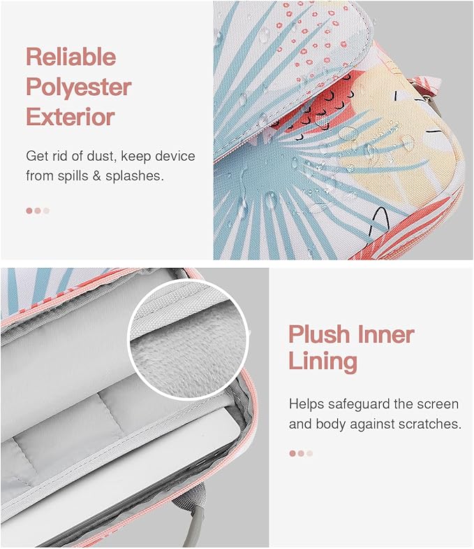 - [High-end Material] – Made of premium polyester exterior, features a water-resistant exterior and gets rid of dust and keeps your device from spills and splashes. Soft and thickened lining helps safeguard the screen and body against scratches.