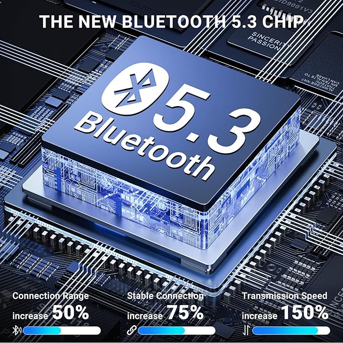 - 2025 New Bluetooth 5.3 Technology: Bluetooth in ear headphones equipped with new version of bluetooth 5.3 chip, using better chip and technology. Transmit high quality lossless audio coding, ensure more stable connection, lower latency and lower power consumption during data transmission. With a stable connection distance of up to 15 meters, you can easily control your music and phone at home, in the office and on the go