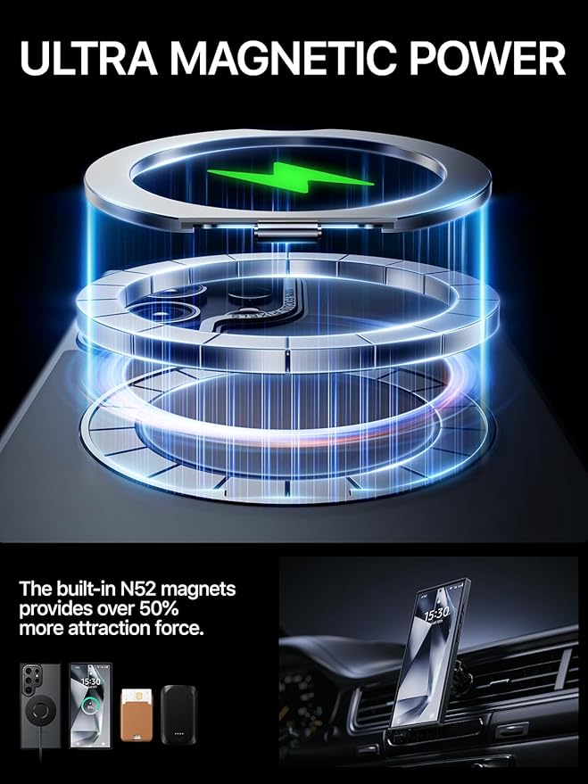 - 【Powerfully Magnetic Case】Discover unmatched adhesion with 48 built-in magnetic ring structures in this QTlier Galaxy S24 Ultra Case. The metal magnetic ring attaches to any ferrous surface or car mount, ensuring safe driving. Fully compatible with MagSafe charging, it ensures zero energy loss, faster charging, and an enhanced wireless charging experience. Note: Slight warming during charging with a magnetic case is normal and results from the magnetic charging technology.