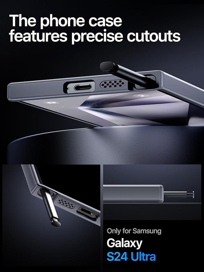 - 【Millitary-Grade Drop Protection】This shockproof case for Samsung S24 Ultra offers military-grade drop protection, absorbing 98% of impacts and increasing protection by up to 30%. With raised aluminum alloy lens frame and screen edge protection, guarding your camera and screen 360-degree, meticulously caring for every detail of the phone. The TPU frame and PC back panel combination provide all-around anti-drop protection to keep your phone looking new.