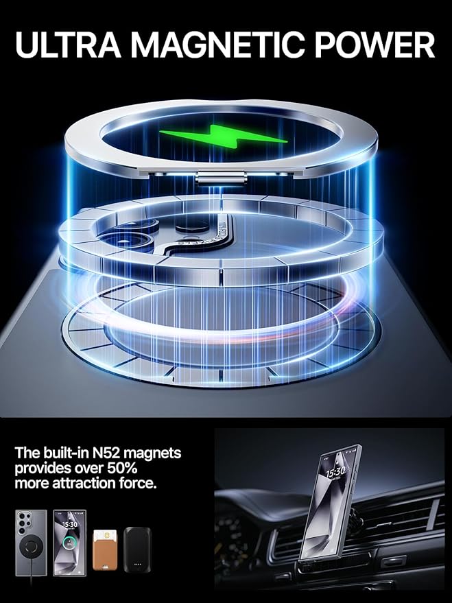 - 【Powerfully Magnetic Case】Discover unmatched adhesion with 48 built-in magnetic ring structures in this QTlier Galaxy S24 Ultra Case. The metal magnetic ring attaches to any ferrous surface or car mount, ensuring safe driving. Fully compatible with MagSafe charging, it ensures zero energy loss, faster charging, and an enhanced wireless charging experience. Note: Slight warming during charging with a magnetic case is normal and results from the magnetic charging technology.