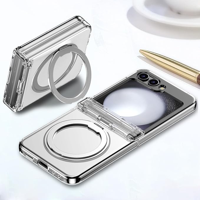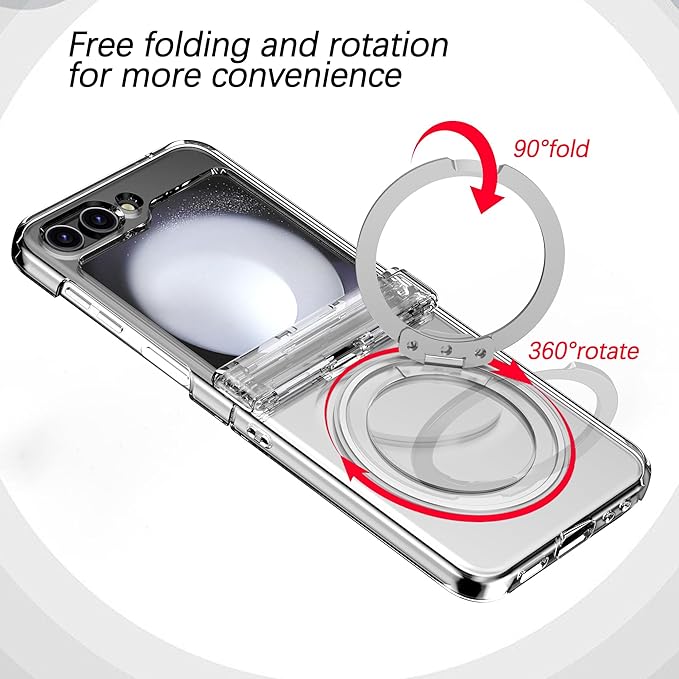 - [INVISIBLE KICKSTAND FEATURE] - The Flip 5 case fully compatible with Magsafe accessories, with automatic alignment, stable adsorption, and support for safe. The foldable built-in Galaxy Z Flip 5 kickstand ring can be used both horizontally and vertically, with full 360 ° rotation and 180 ° angle adjustment. Meet your various needs in different occasions.