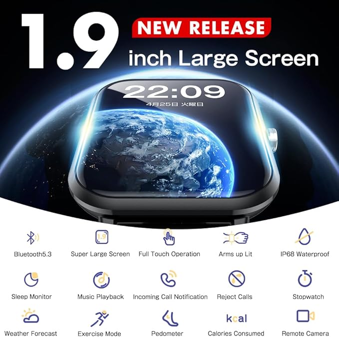 - Clear Display and Lightweight: Boasting a clear 1.9-inch high-definition screen for vivid visuals that are easy to read in any lighting. With its lightweight and ultra-thin design, measuring just 0.8cm in thickness, our smartwatch is incredibly comfortable to wear, ensuring no strain, even during vigorous exercise.