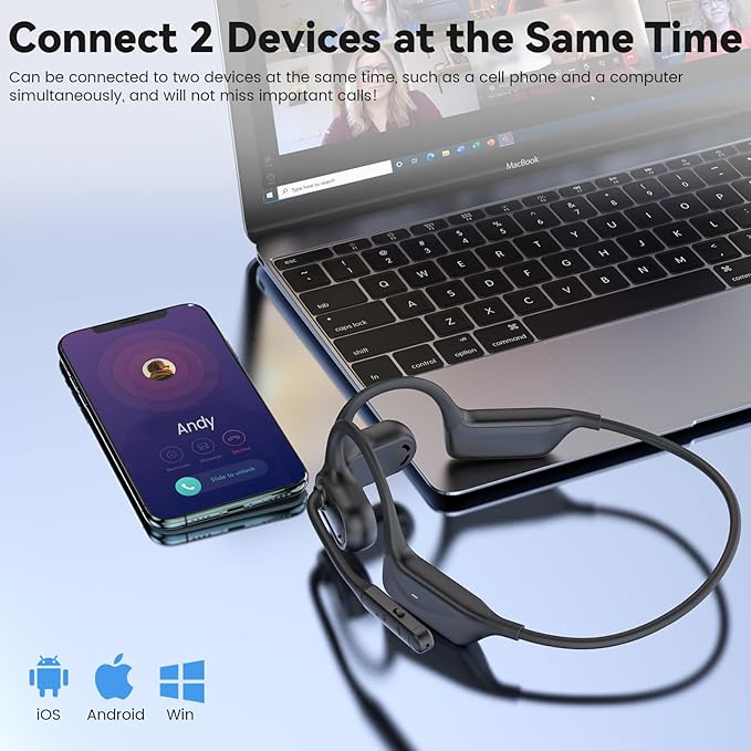 - Safety and Multipoint Connection: The open-ear design of the bluetooth headphones with microphone avoid the discomfort of in-ear and over-ear headphones. It keeps your ear canal clean and healthy, protecting your eardrum and keeping your ears alert for safety. Additionally, the wireless headset with microphone supports dual connections, allowing you to connect to two devices at once, so you never miss a call