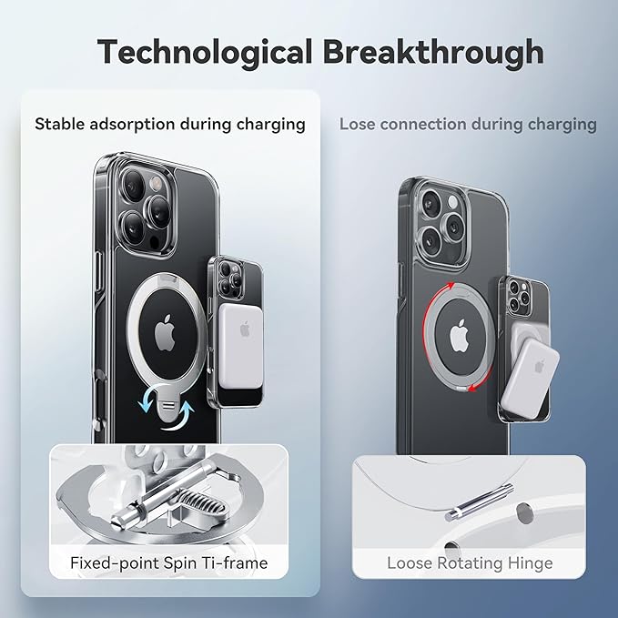 - 【Pioneering 360° Spin Stand-iF Design Award Winner】 Made from high-quality aerospace titanium material with high-temperature forging. The newly upgraded four-way locking titanium frame has increased the durability of the ring by 200%. Upgraded with horizontal adjustability based on vertical adjustment. Free your hands anytime, anywhere, making it perfect for hands-free video calls, watching video or browsing content both horizontally and vertically.【180-Day Warranty】