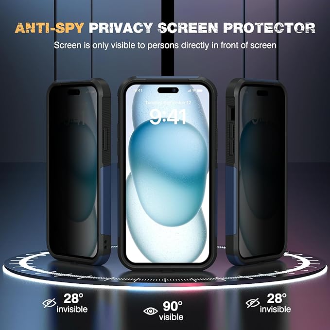 - 【4-in-1 360°Full Protection】 Case for iPhone 15 with 9H Privacy Tempered Glass Screen Protector can protect your phone screen from scratch and broken. 2-Layer structure (the flexible rubber inner cover and hard PC back cover) provides 360 degree full body rugged protection.