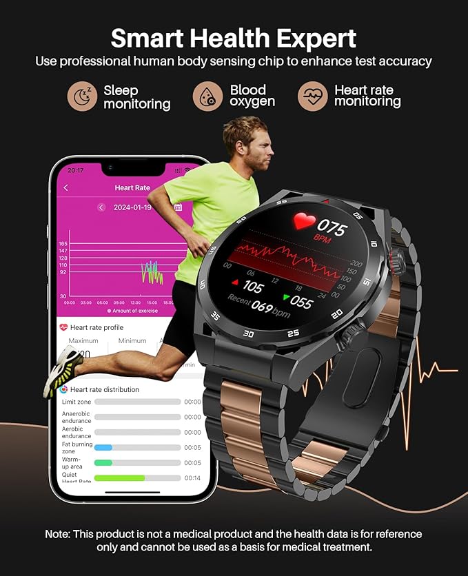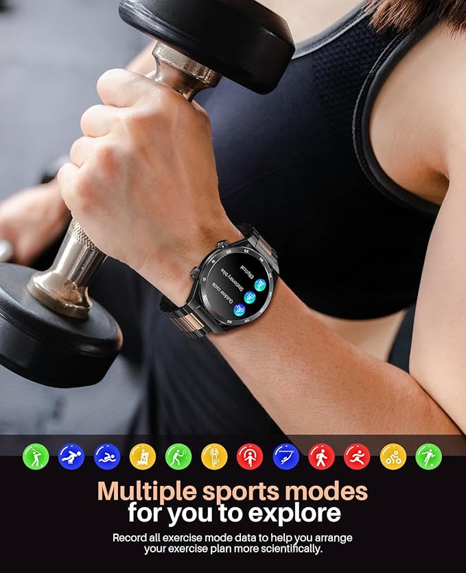 - ALL-DAY ACTIVITY HEALTH TRACKING — This men's smartwatch features advanced sensor technology that combines low power consumption with high accuracy. It not only tracks your daily steps, exercise distance, and calorie consumption but also continuously monitors real-time heart rate, blood oxygen levels, and sleep quality. Whether in everyday activities or focused workouts, this smartwatch provides comprehensive health data to help you better understand and manage your health.