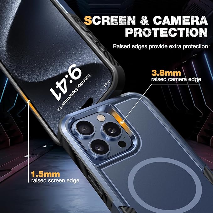 - 【Military-Grade Protection】 Diaclara for iPhone 15 Pro Max case certified MIL-STD-810H protection, 4 corners equipped with advanced impact resistant anti-collision angle patent strongly protect the protruding mobile phone from falling, collision and face-up or face-down injuries.