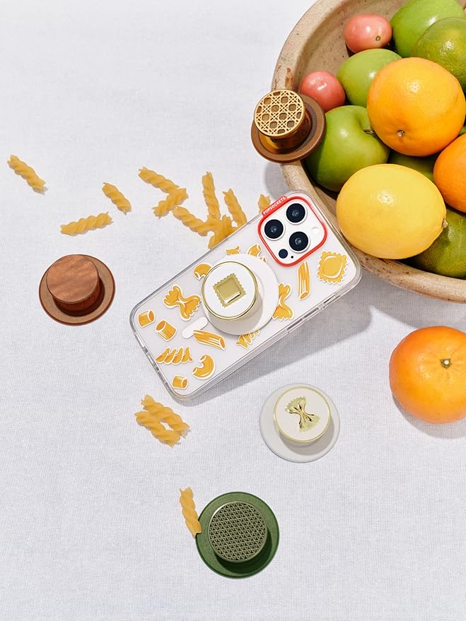 PopSockets Phone Grip for MagSafe with Kickstand, Magnetic Stand, Swappable Top, Secure Hold for iPhone MagSafe Cases, Phone & Tablet Grip - Enamel Pasta