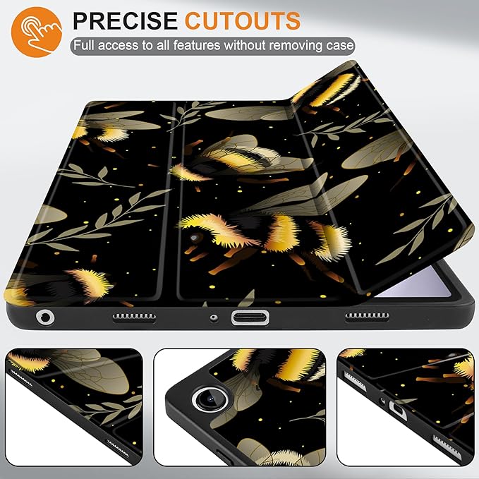MEEgoodo Case for Samsung Galaxy Tab A9 Plus 11 inch Cover 2024 2023 with S Pen Holder, A9+ Smart Tablet Cases with Leather Trifold Stand+Soft TPU Back Shell+Smart Auto Wake/Sleep, Bumblebee & Leaves