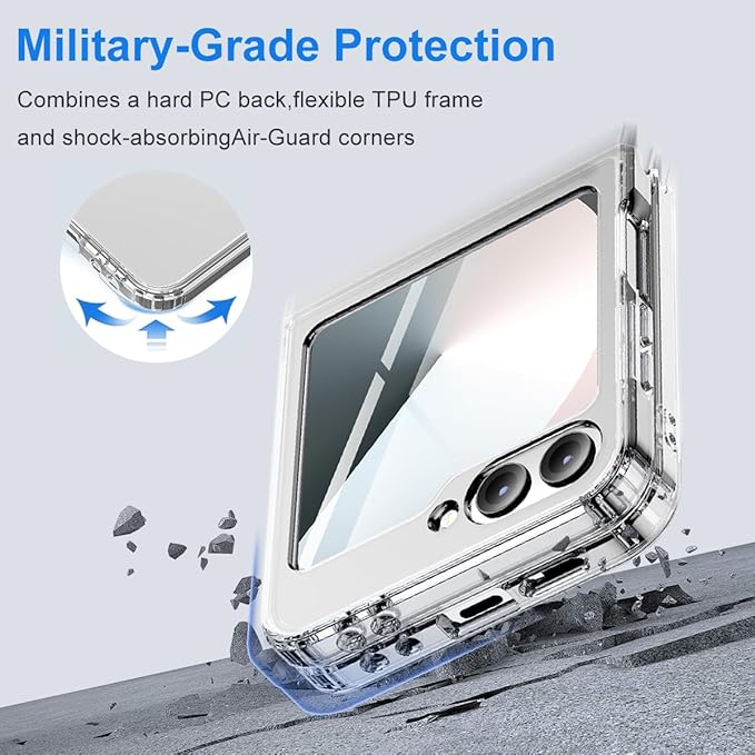 - [Excellent Protection] - Four reinforced corners and the fully wrapped minimalist Galaxy Z flip 6 phone case has undergone hundreds or thousands of tests, demonstrating excellent anti drop and shock performance. TPU edges and hard PC back can effectively absorb and disperse impact forces.