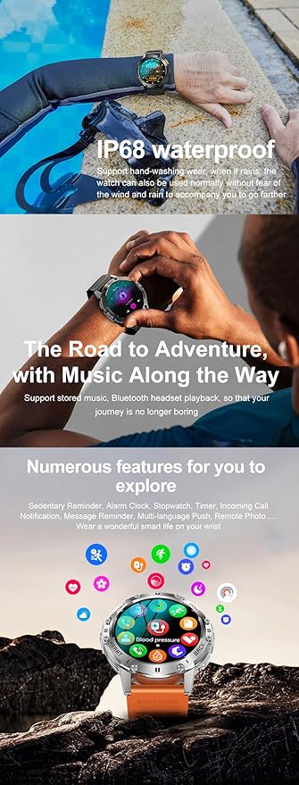 - 【Trusted Service & Value Added 】The smart watch is compatible with Android 4.4+ and iOS 8.0+ smartphones.If you have any questions, Please do not hesitate to contact us, we will provide you with a satisfactory 7/24 service.Smart watch for android phones compatible also has AI voice,next 7days weather forecast, stopwatch, alarm clock, music and camera control,it must be surprising gift for family,fathers, sons.The smartwatch is also a good gift for military enthusiasts who loving militar equipment gears for outdoor sivival &sos hiking moutain climbing camping etc .