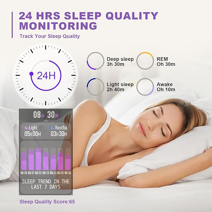 - 24 Hours Health Monitoring: This smart watch for man women features real-time heart rate monitoring,pressure monitoring, exercise recording and sleep monitoring, accurately records all-day activities such as steps, calories burned a fitness watch to monitor your health at all times.