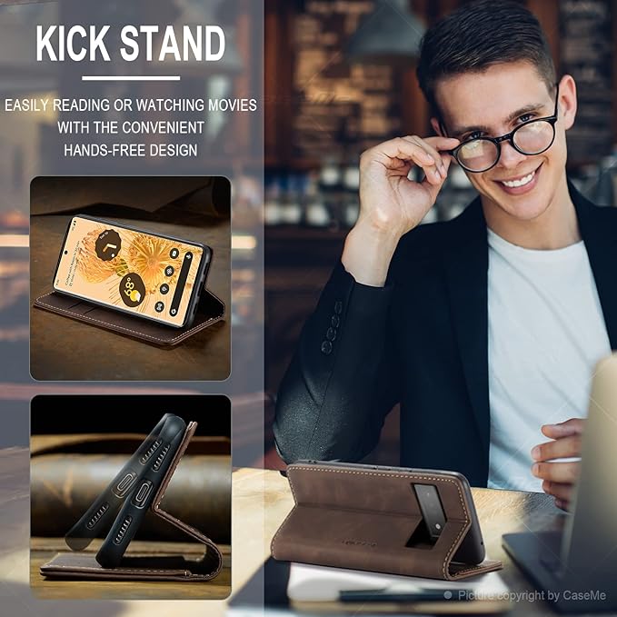 for Google Pixel 6 Pro Case, Flip Wallet Leather Case with Card Holder Magnetic Closure Shockproof Kickstand Protective Phone Cases Cover for Google Pixel 6 Pro,Coffee