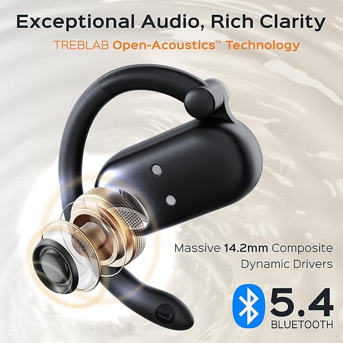 TREBLAB X-Open - True Open Ear Wireless Earbuds, Lightweight Comfort, Behind-Ear Fit, Immersive Sound, Dual Mic for Calls, 40H Playtime, Bluetooth Headphones Open Ear for Sports, Workout, Running
