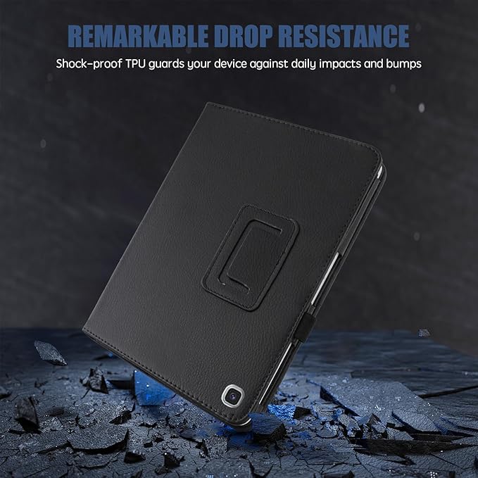 - 【Material & Pen Holder】- Premium synthetic leather exterior with soft microfiber lining Back cover. Perfectly protects device against from fingerprints,scratches,shocks and dust.Providing a firm grip and guaranteed durability to extends the use age. Edge of the Tablet Shell Paired with Pen holders for more convenient storage of Stylus Pen.