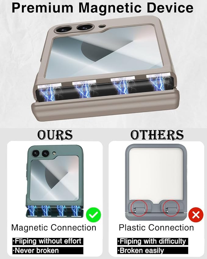 - [Advanced Hinge Protection]: Our Z Flip 6 Case, 7 FE case features an innovative hinge protection design specifically for the Galaxy Flip 6 Case, Flip 7 FE Case, providing complete protection from all angles. Our Z Flip 6 Case, Flip 7 FE case is designed with a unique magnetic connection that won't be broken by impacts such as drops. Besides, our Z Flip 6 Case, Z Flip 7 FE Case with unique design flips more smoothly without spring resistance.