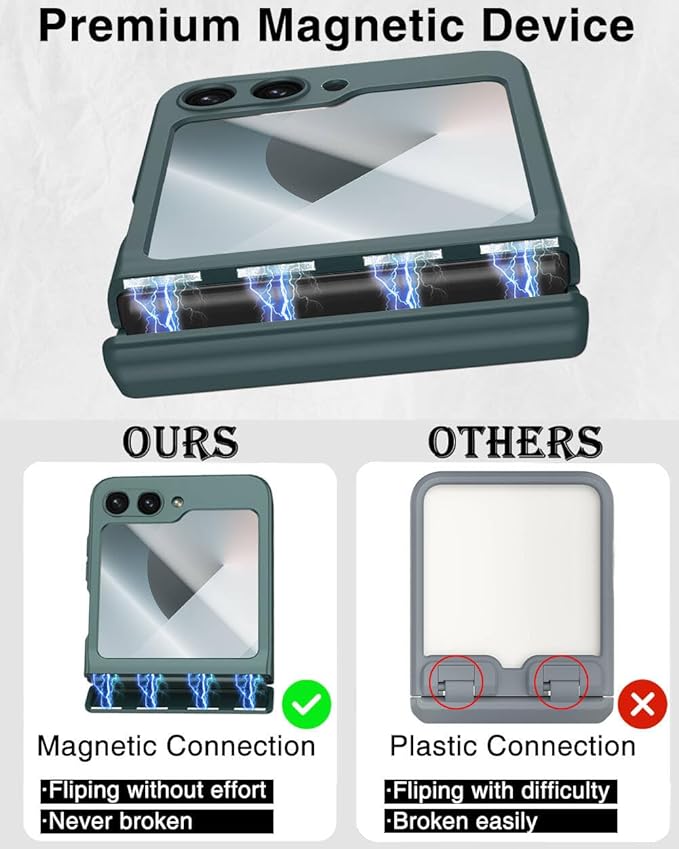 - [Advanced Hinge Protection]: Our Z Flip 6 Case, 7 FE case features an innovative hinge protection design specifically for the Galaxy Flip 6 Case, Flip 7 FE Case, providing complete protection from all angles. Our Z Flip 6 Case, Flip 7 FE case is designed with a unique magnetic connection that won't be broken by impacts such as drops. Besides, our Z Flip 6 Case, Z Flip 7 FE Case with unique design flips more smoothly without spring resistance.