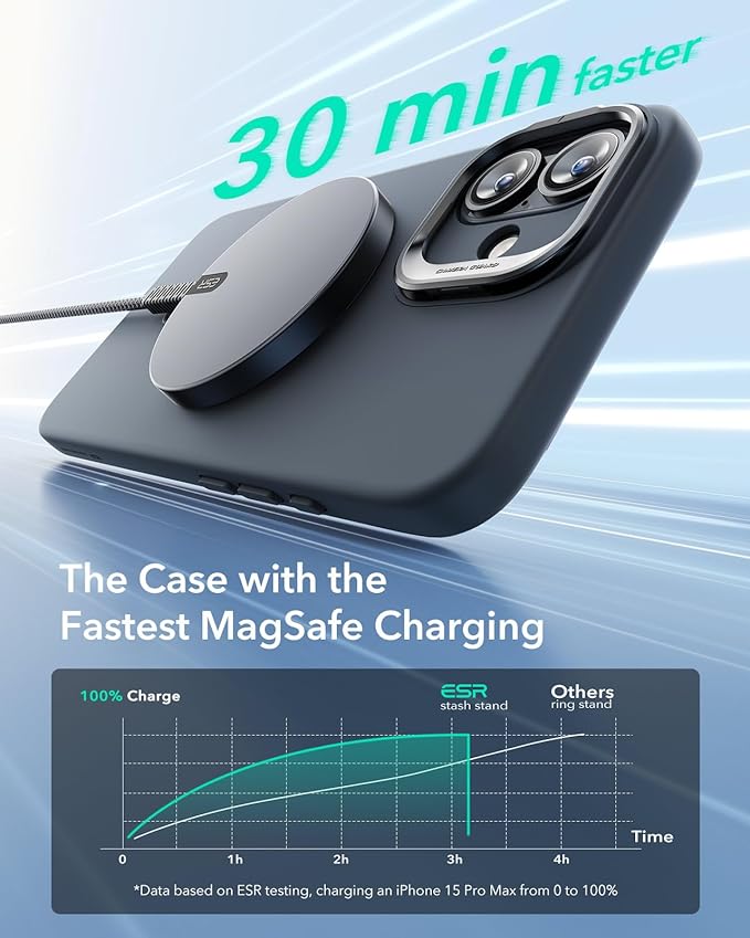 - Adjustable Stash Stand: positioned around camera frame to stay hidden when folded away while keeping MagSafe ring 100% unobstructed; enjoy a freely adjustable and stable view for watching shows whenever, wherever