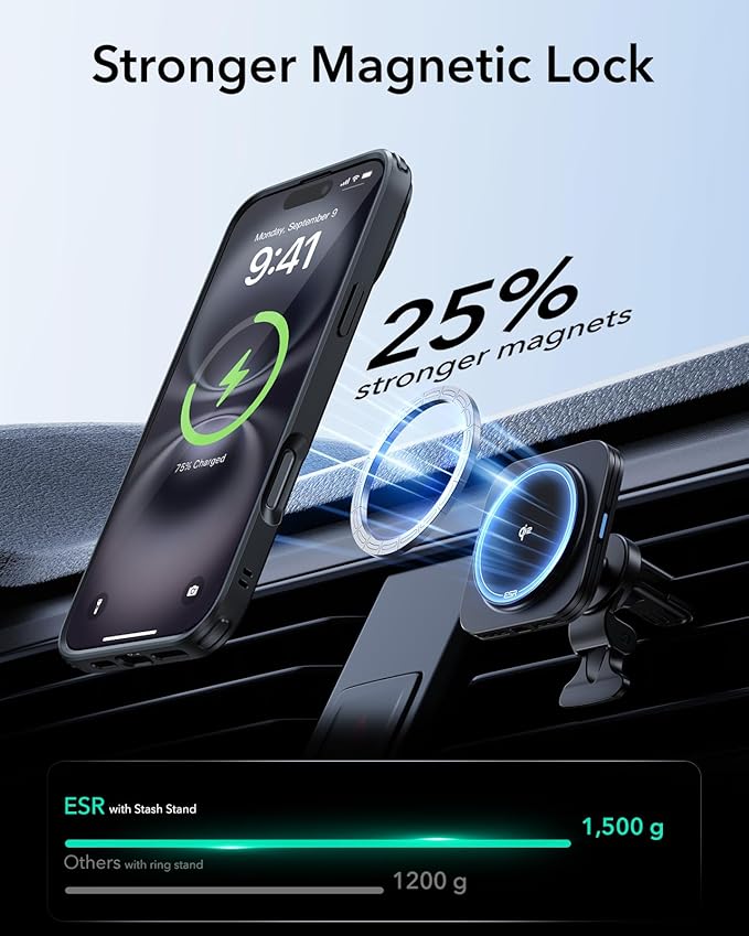 - Stronger Magnetic Lock: powerful built-in magnets with 1,500 g of holding force enable faster, easier place-and-go wireless charging and a secure lock on any MagSafe accessory