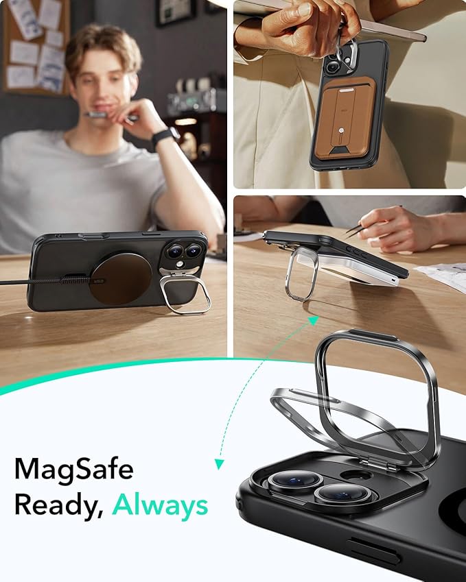 ESR for iPhone 16 Case, Compatible with MagSafe, Military-Grade Protective Case, Built-in Stash Stand Phone Case, Scratch-Resistant Back Cover, Classic Series, Frosted Black